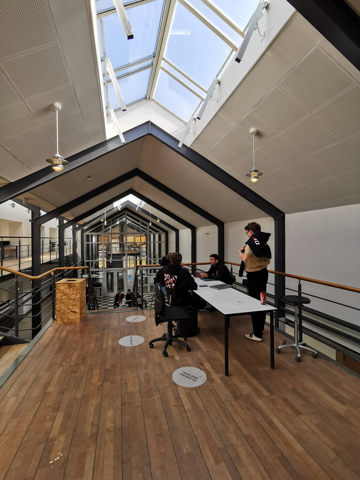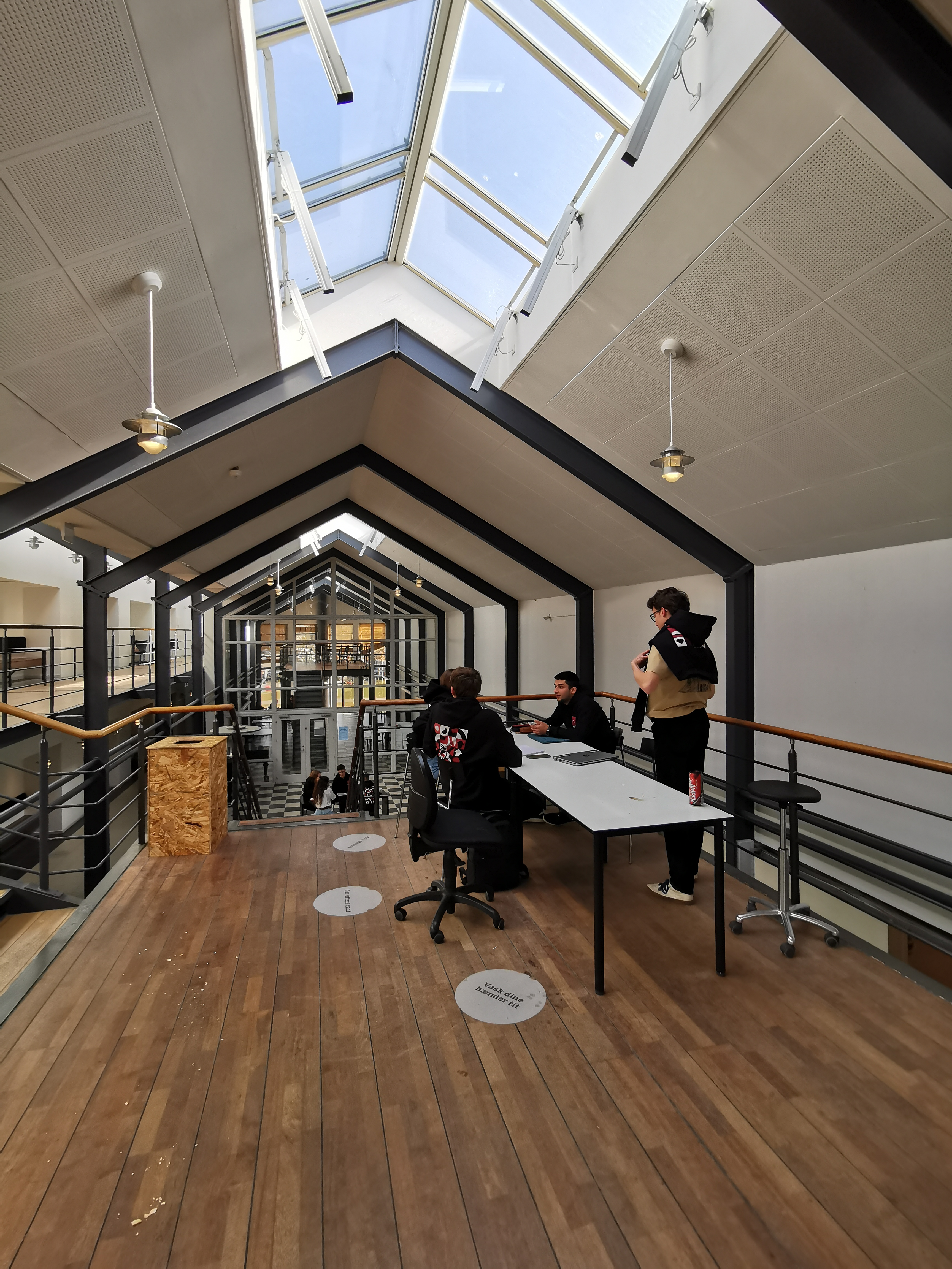 As well as we didn't have a well-prepared workspace to work in a team, that's why we had to get used to the existing conditions, i.e. noisy places full of people, tight desks and also being limited to find one with power supply near it.